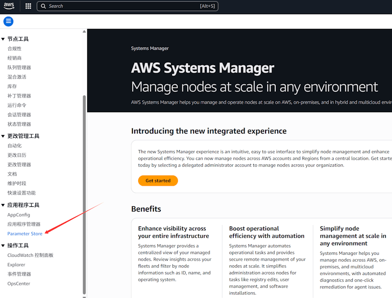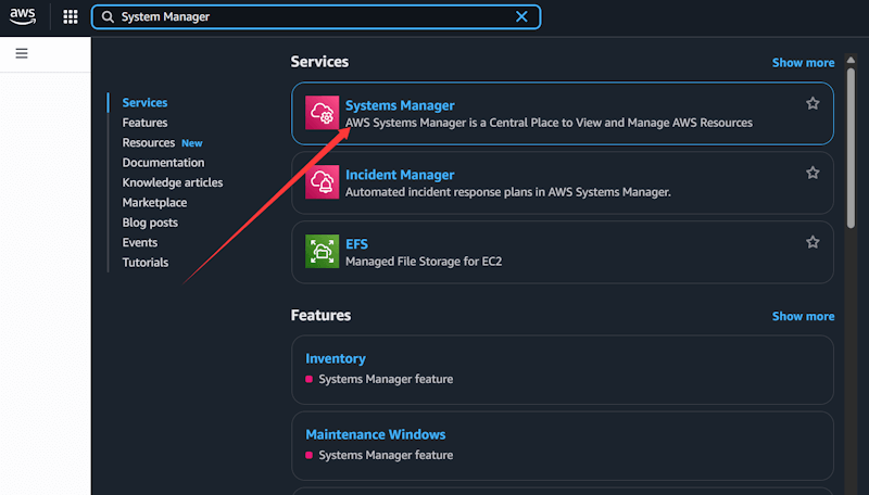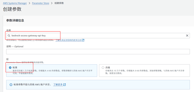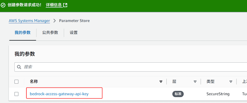 Bedrock Access Gateway 需要我们创建API KEY密钥来验证,我们注册且登录AWS控制台,如下图搜索System Manager。