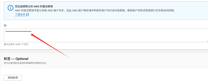 如上图找到左侧的 Parameter Store,然后去创建参数。